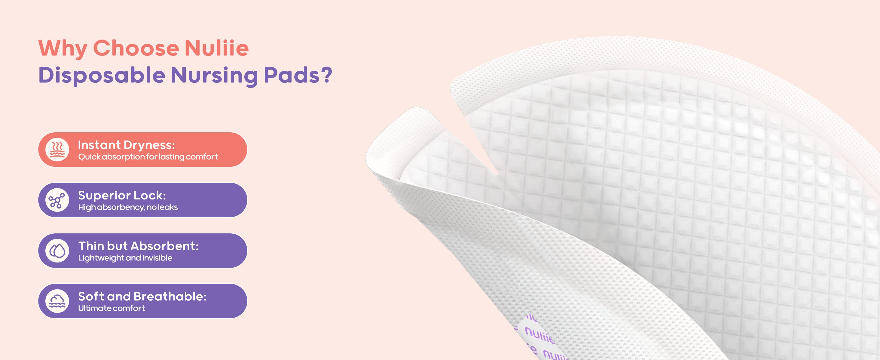 - Instant Absorption & Long-Lasting Lock-In Moisture: Features a polymer layer for rapid absorption of breast milk and effective moisture lock-in, maintaining dryness and comfort. Day or night, nuliie disposable nursing pads protect your comfort, preventing embarrassing leaks with confidence and ease.